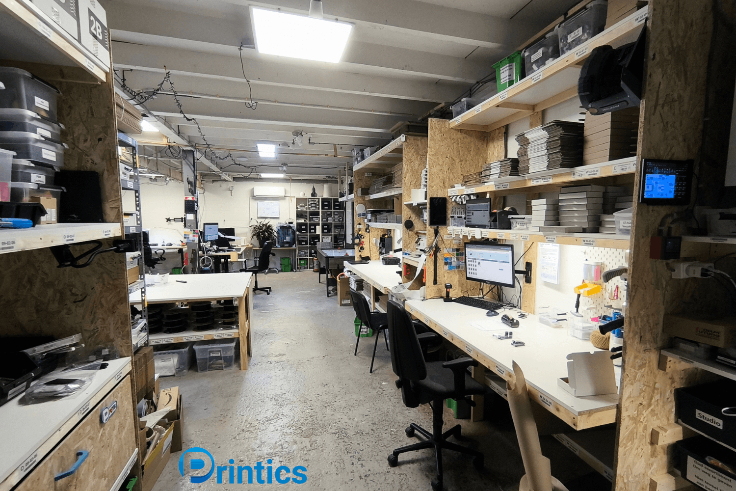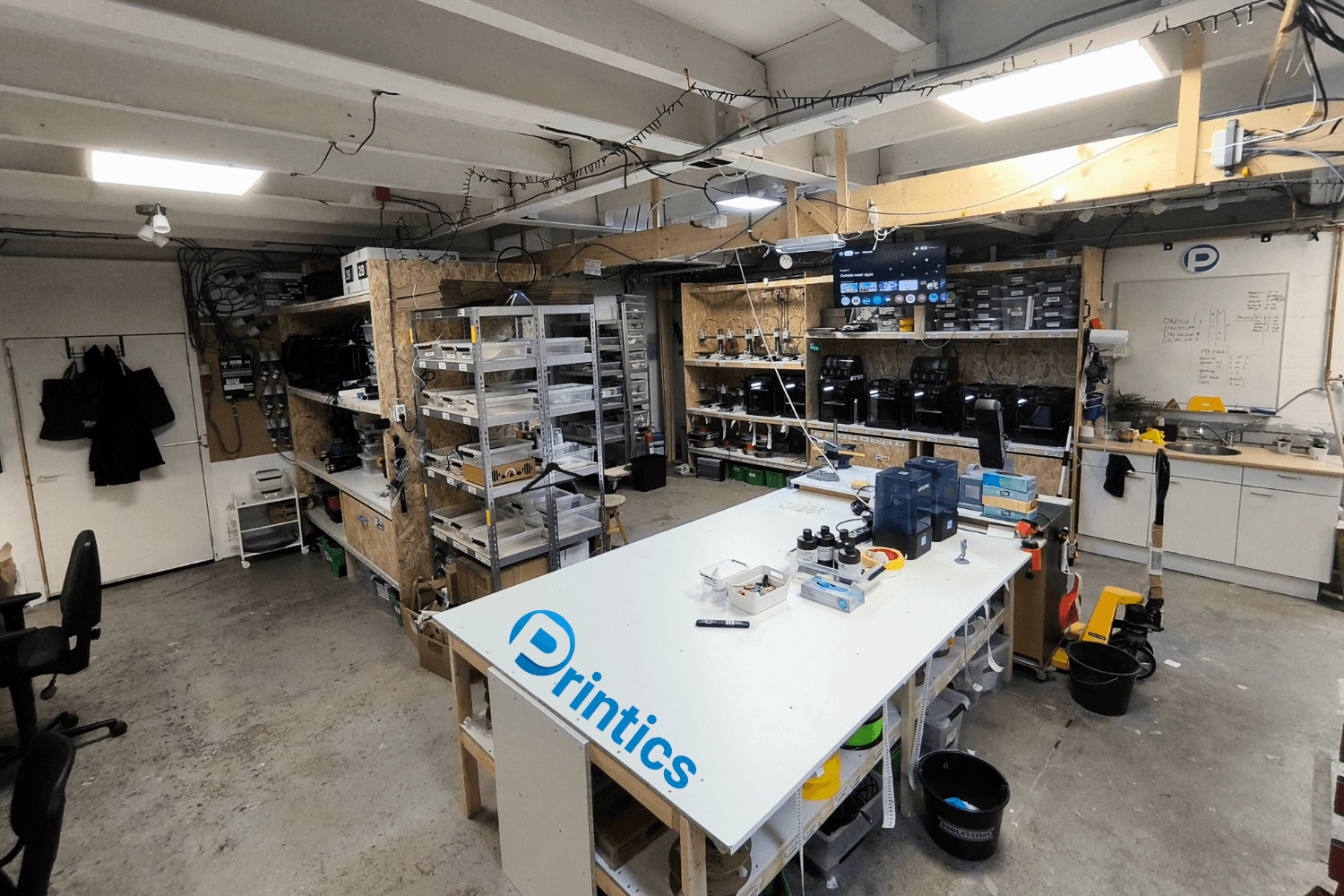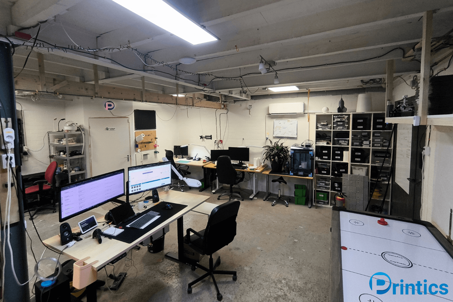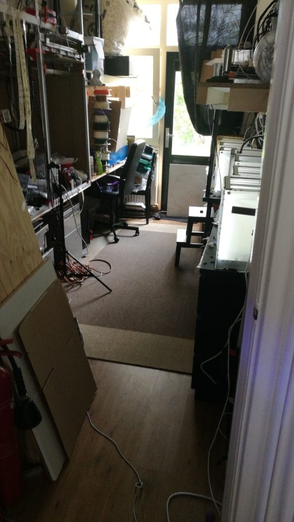 Printics groeide gestaag door maar de ruimte niet. Er werd namelijk vanuit huis geprint om de printers 24/7 draaiende te houden. Op een gegeven moment stond 1 slaapkamer vol met printers en de werkbank in de woonkamer.
