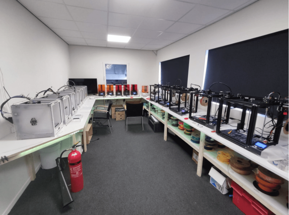 2021 is een bijzonder jaar op meerdere vlakken. Het is de laatste maanden erg druk geweest en de onderstaande foto’s zijn verouderd. We hebben nu nog meer printers draaien sinds de verbouwing. Als het even wat rustiger is gaan we het “printhok” even opnieuw organiseren en een mooie video maken.